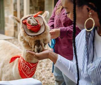 For those looking for an even more personalized experience, Lost Pines offers a Breakfast with the Alpacas package. Breakfast begins with room service on the patio, followed by the opportunity to feed, pet, and photograph two cute alpacas brought to your room. Handlers are present to answer questions and provide interesting facts about the adorable Peruvian animals.