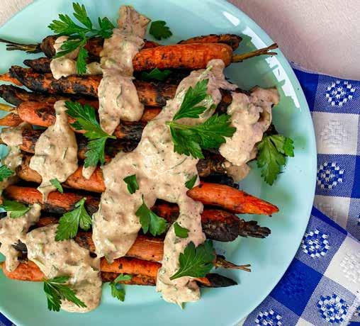 Preheat your grill to medium-high. In a pot of boiling salted water, add the carrots and cook for 6 minutes. Remove and pat dry. Add your carrots, lemon slices, and chili to the grill and cook until just beginning to char on both sides, about 5 minutes per side. Remove and set carrots aside. Trim the stem from the chili. To make the sauce, add the lemons and chili to a blender along with the remaining ingredients. Season with salt and blend until smooth. Drizzle over carrots and serve.