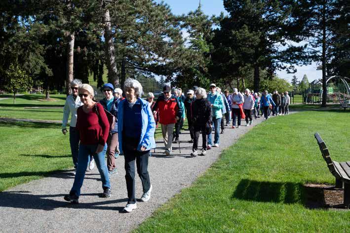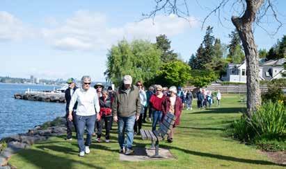 Gerry Holley (93) has walked with the group since its founding. She said, “I had not been doing exercises as much as I wanted. I saw on the Mercer Island community news that there was a senior group that was going to start walking 3 to 4 miles every Wednesday. And so, I thought I’d try it.” There were only seven people on the first day. These days the group numbers roughly 60 men and women.
