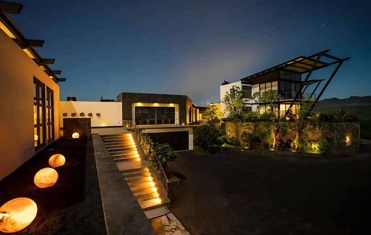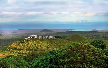 the Galápagos National Park within easy reach. The 75 acres of private wild giant tortoise reserve perch 1,476 feet above sea level. Guests enjoy sweeping views of the pristine, arid savannah of Santa Cruz Island from all the public areas and rooms. To the north, guests can admire extinct volcanic cones veiled in mist and mountains adorned with lush tropical cloud forests and green pasture farms. To the southwest, a 270-degree panorama of the seemingly boundless Pacific Ocean unfolds, with nearby islands providing a picturesque backdrop.