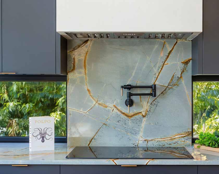 Veined marble with a natural view backsplash