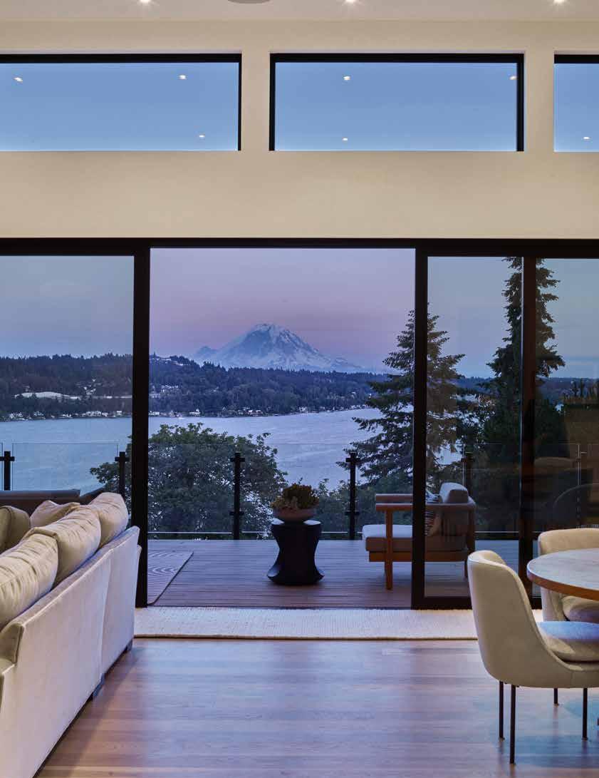The result is a stunning transformation. Their new home features expansive, open spaces that highlight the natural beauty. The large windows provide unobstructed views of the lake and Mt. Rainier, creating a serene and picturesque backdrop for everyday life and special gatherings.