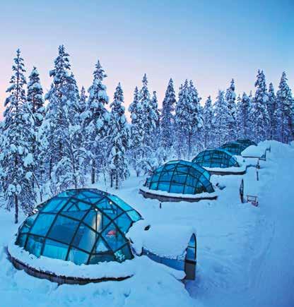 These arctic igloos make Urho Kekkonen National Park look like a dreamy winter wonderland. Snuggle up inside the glassroofed globe and watch the dancing northern lights overhead. Get immersed in the world of northern lights, midnight sun and other miracles of this world-renowned arctic resort. Just bundle up before stepping outside – temperatures can drop to -22 degrees!