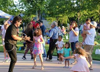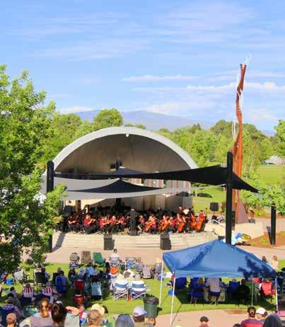 RIGHT: Meridian Symphony Orchestra performing a free outdoor concert in Kleiner Park celebrating Gene Kleiner Day and the philanthropy that made the park possible.