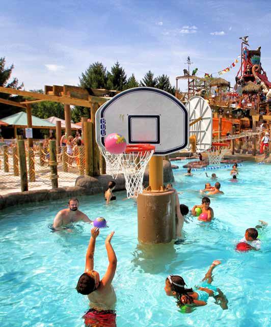 If you’re more of the type to appreciate a good obstacle course, Critter Crossing lets you traverse the water on forest-themed floats with aid from overhead ropes. The area also features water basketball.