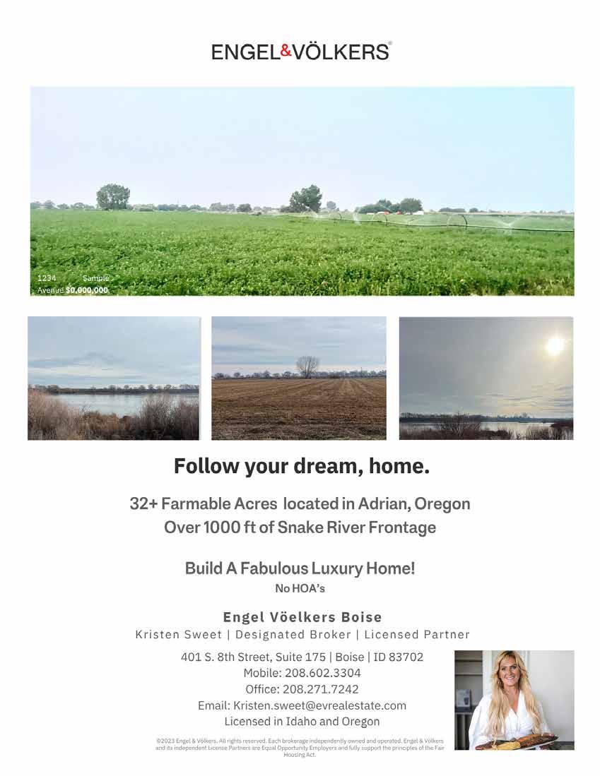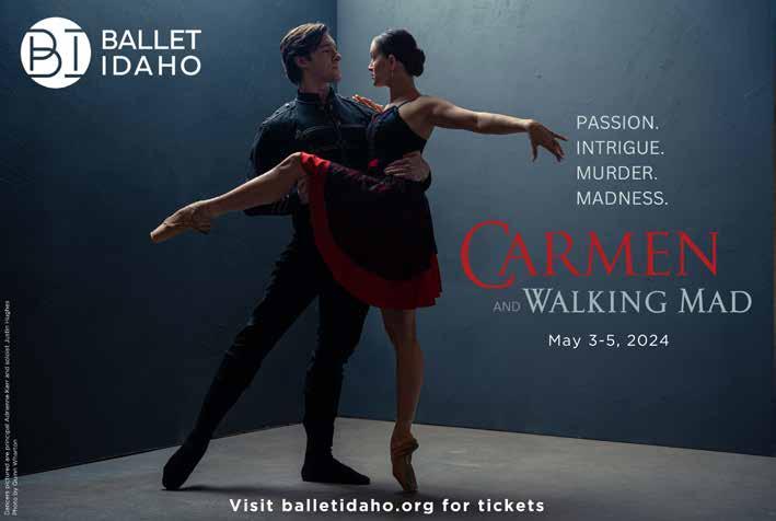 inside the issue APRIL 2024 | INVESTMENT Departments Amidst Idaho’s rugged beauty, cattle ranching families exemplify the essence of unity, heritage, and resilience. Investing in family means nurturing traditions, weathering challenges, and embracing the vast landscapes that define the Gem State. On the Cover 8 Lifestyle Letter 14 City Scene 20 Locally Sourced LIFE + CULTURE 24 Family Care LIFE + CULTURE 28 Back Stage ENTERTAINMENT 34 Outdoor Adventure LIFE + CULTURE 40 Must See LIFE + CULTURE 44 Local Limelight FOOD + BEVERAGE 48 Financial Buzz FINANCE + LEGAL SERVICES 50 Healthy Lifestyle PROFESSIONAL SERVICES 54 Our Town ENTERTAINMENT The Comedy Scene That Could Yes, we have no club, but we have a lot of heart Reflections on Round Lake Preserving Idaho’s natural wonders, an Idaho State Park Highlight A Family Affair How the Hoagland Family is Keeping the Ranching Tradition Going in the Valley Investing In You: Your Path to Success Investing In You: Your Path to Success Featured 28 34 44 50 44 34 50 28 10