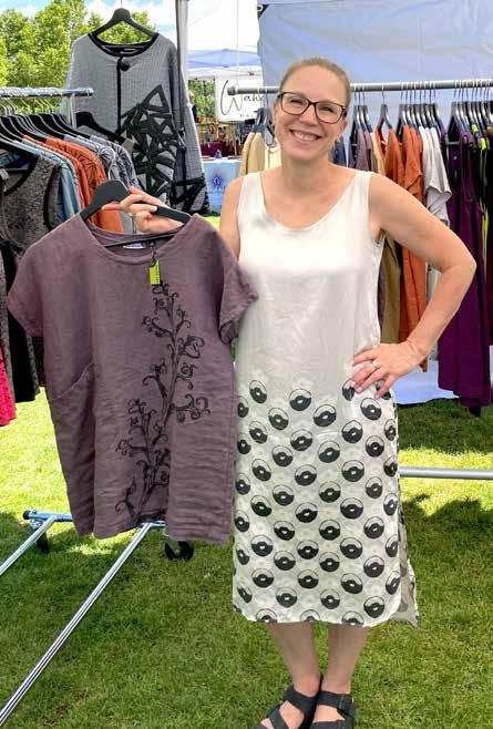 Arin Arther – Screenprinted Textiles. Arin creates the designs, screen prints the fabric, and sews this elegant and sophisticated clothing. Arin has a Bachelor of Fine Art and found that textiles are her passion. She creates her images from nature and cityscapes. Doing this work for 20 years, Arin has been selling wholesale designs to museums and, in the last 10 years, selling clothing directly to consumers via shows and online. Arin’s goal is to have wearers of her clothing feel comfortable and beautiful in the timeless and seasonless designs. Because the clothing is made from all natural fibers it is durable and easy to care for. Instagram: @ArinArthurTextiles