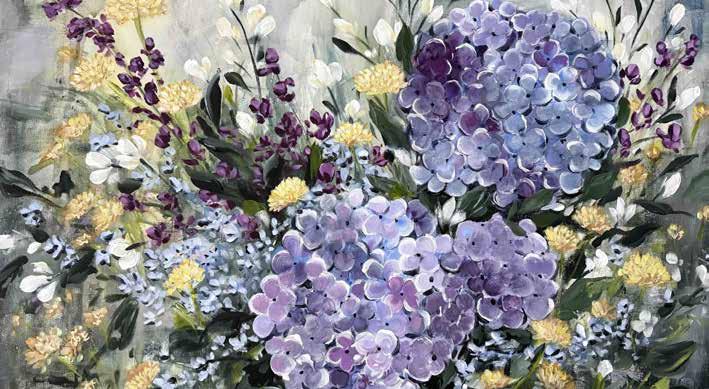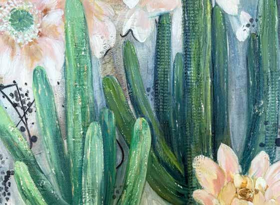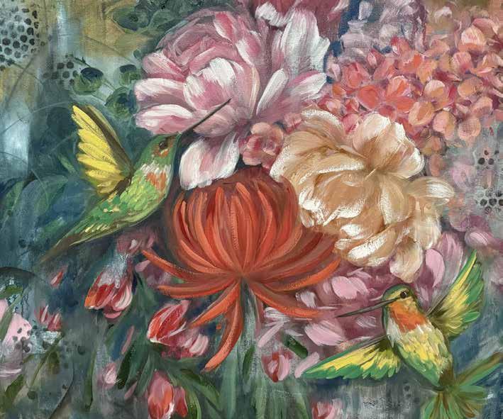 It was a hobby for her, an outlet. Despite her mom’s florals and decorating schemes, Ellen didn’t start exploring art until high school, taking an art class. Her talent was immediately noticed. She won awards and was featured in different student galleries. She continued to take art classes in col lege, even while pursuing different degree paths. Her talent was obvious, but she kept art a hobby. “It never occurred to me that I could make it a career,” she says when explaining her art journey.