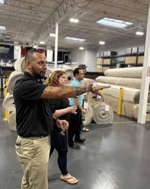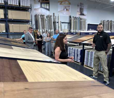 Angela and Elijah walked guests through each row of eye-pleasing, in-stock flooring such as laminate, luxury vinyl, hardwood, and tile. While guests browsed the aisles asking questions, they learned that laminate flooring has the look of hardwood or natural stone at a much lower price; luxury vinyl flooring is CONTINUED