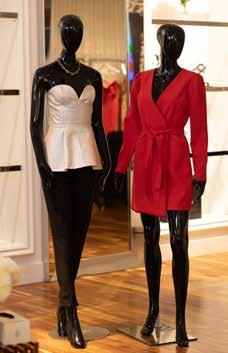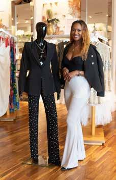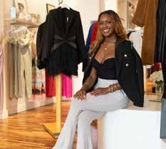 LUXURIOUS LEATHER ALLURING MESH AND TIMELESS BLAZERS 3. OVERSIZED AND COZY OUTERWEAR 4. RAVISHING Opposite page: Ashley Jefferson Top left: The Pants of Pearls and Blazer Set Top middle: A leather corset top designed by Aishae Couture and The Red Wrap Blazer Dress