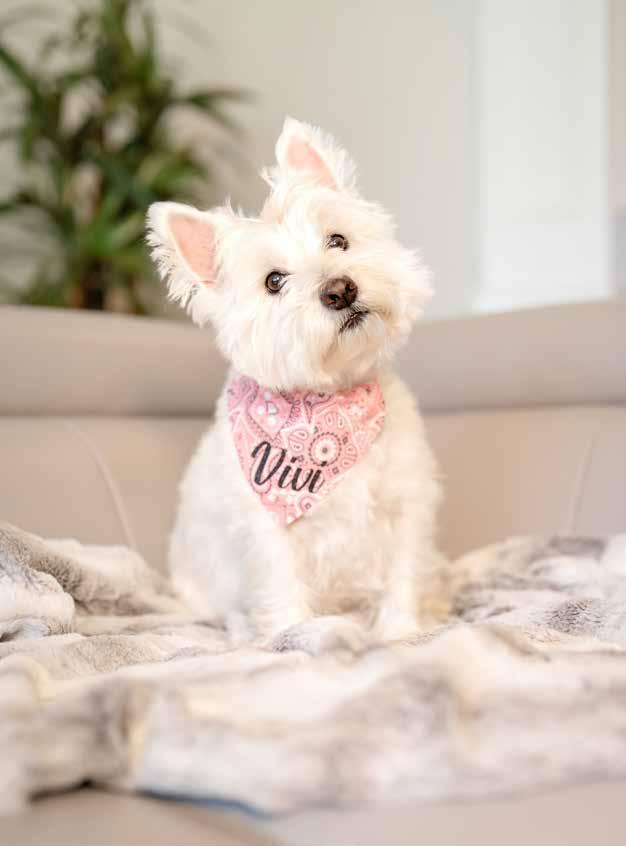 Meet Vivi, the vivacious 10-year-old West Highland Terrier who defies her age with boundless energy. Despite reaching double digits, Vivi has the spunk of a two-year-old! She is a social butterfly and quite vocal. She’ll talk to all of the dogs she meets. This water-loving girl loves to frolic up and down the beach. She obviously looks great in pink and is incredibly smart. You would think she understands all of the words coming out of your mouth. She’ll take you up on a rousing game of playing with her toys any day. Her zest for life is infectious. And, as an extra special surprise, April is also her birthday month! So Happy Birthday, Vivi!