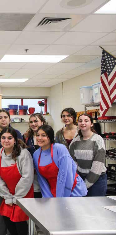 The club’s reach is expansive: present for this particular meeting was Ms. Valleau, a beloved Latin teacher at Foran who stopped by simply to lend a hand and learn. Two students, Emilia and Allison, spoke with me in between dicing peppers for baked ziti. “I just love being able to give back,” Emilia said. “And especially to our own community right here in Milford,” added Allison.