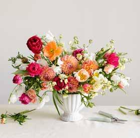 This will be your grid. Forage branches to give height and clip various spring blooms in similar hues to give you an arrangement that feels monochromatic. Add a few interesting color tones for interest.