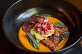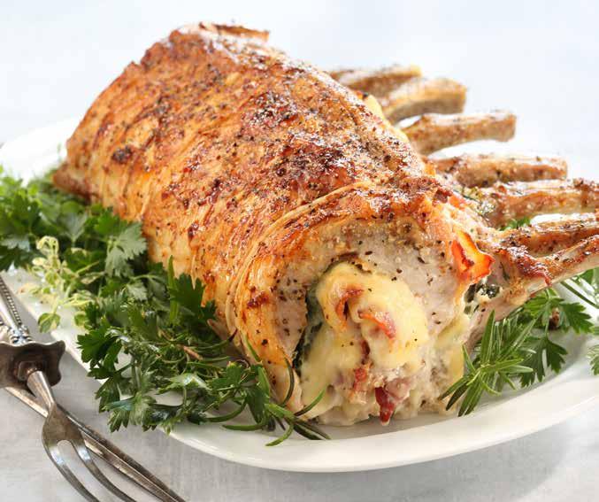Whole organic turkeys weighing upwards of twenty pounds. Minnesotagrown Berkshire hams which put any Yorkshire’s best work to shame. Prime rib delivered to the pinnacle of tenderness by twenty-eight days of in-house dry aging. Shrimp, lobster, crab, salmon, crab stuffed inside of salmon, and plush scallops ensconced within pink and white streamers of porcine perfection.