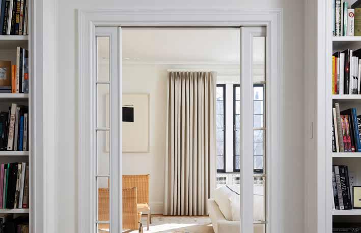 Another recent project of Ingrained Wood was on Cedar Lake. “We made custom-recessed pulls in a lot of the cabinetry so that there was no hardware involved. We also developed this integral system in the pocket doors where you just stick your finger into the door and are able to open or close it.”