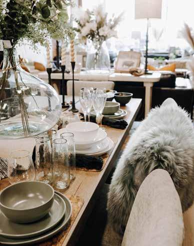 “I love a neutral palette with earthy tones,” said Mahri. “Then we can add a little accent color here and there—just like the colors you see when you're outdoors. They complement the natural wood and stone textures but also create a cozy and inviting atmosphere.” Mahri continues to mold her mountain-living style to fit the desires of the customers who walk through her doors. “I often hear, ‘I’ll take one of everything!’ I love feedback from all my patrons and try to incorporate what they’re looking for into new and exciting additions. Recently, I took on a new line of floor and furniture accents from Denmark, including extra large sheepskins which are handmade and hand-dyed.”