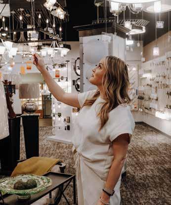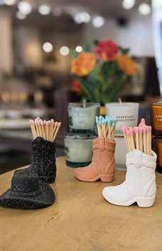black fringe. Then, there’s The Chair—a simple, dining room-style design upholstered in the fuzzy comfort of turmeric velvet. Since taking up a spot near the checkout area, the chair has become like a third member of the staff and rarely sits empty. “We have become friends with many people while they sat in that chair,” said Alison. For Paige, it symbolizes the individual attention so important to their success. “Personal interaction is a huge deal,” she said. “We want to create not just a fun and beautiful place, but a welcoming space as well.”