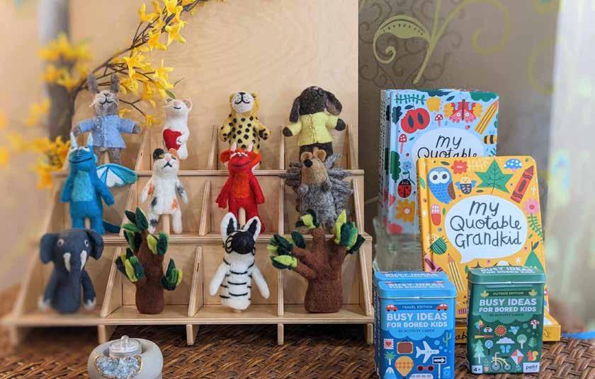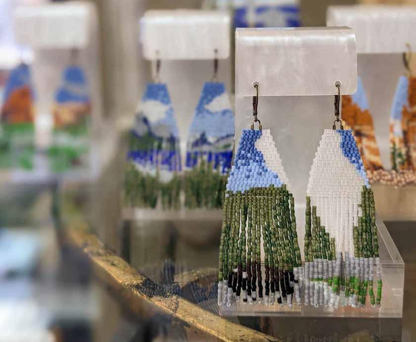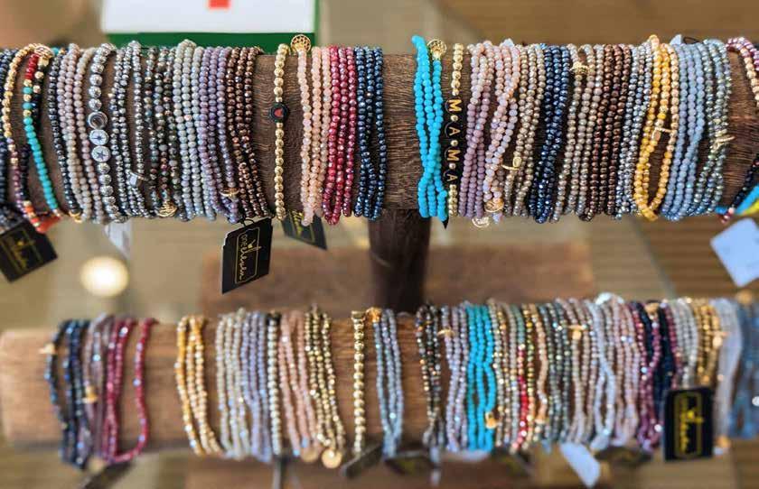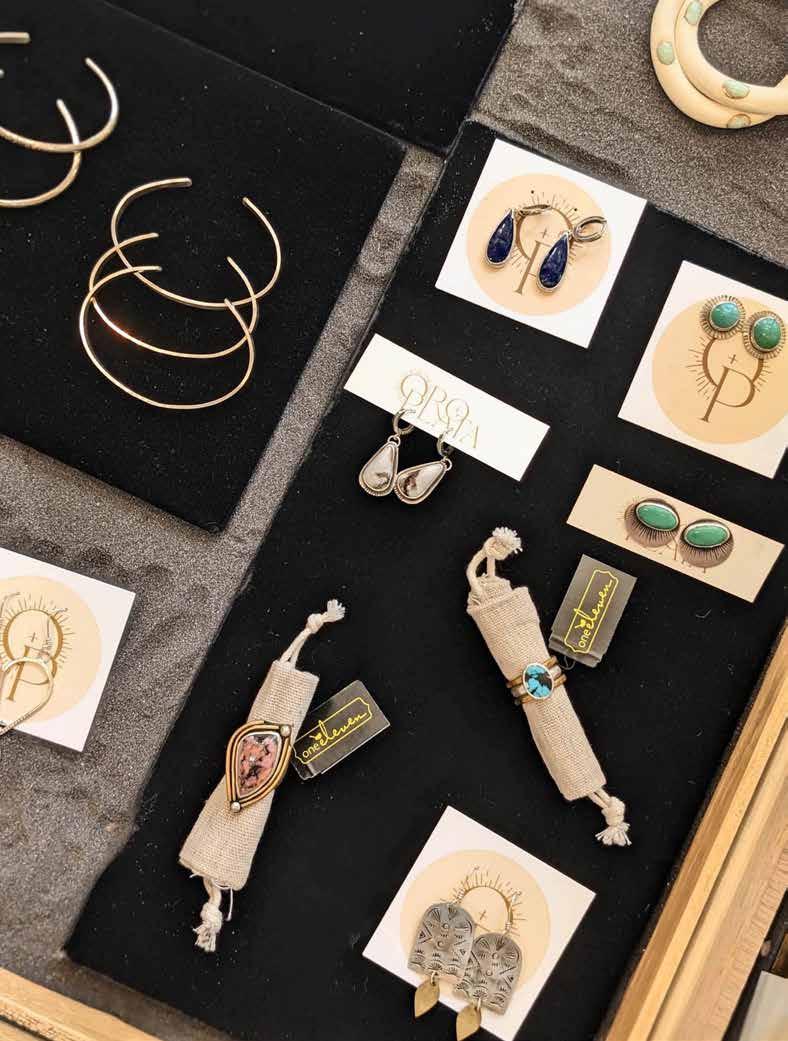 customers for the ongoing array of interesting items. “Our customers are the ones who shape the inventory. We buy for them and the store is full of what they love,” said Paige. One item they always keep in stock is their “sparkles.” These earrings and necklaces are bejeweled with Austrian crystals from Berlin and shine in a rainbow of colors, attracting adults and kids alike. “I remember this one time,” said Alison. “A young girl popped in. She was all rough and tumble in her soccer get up, knee pads and all, but she was rockin’ her sparkles!” Paige said. “It’s so funny. We can move that display somewhere else and, no matter where it is, customers still gravitate towards the sparkles right away.” Another popular draw are bracelets and earrings by local silversmith Jessica Mahoney of Oro y Plata Metalworks. “She has quite a following. Her stuff sells out right away. We have to
