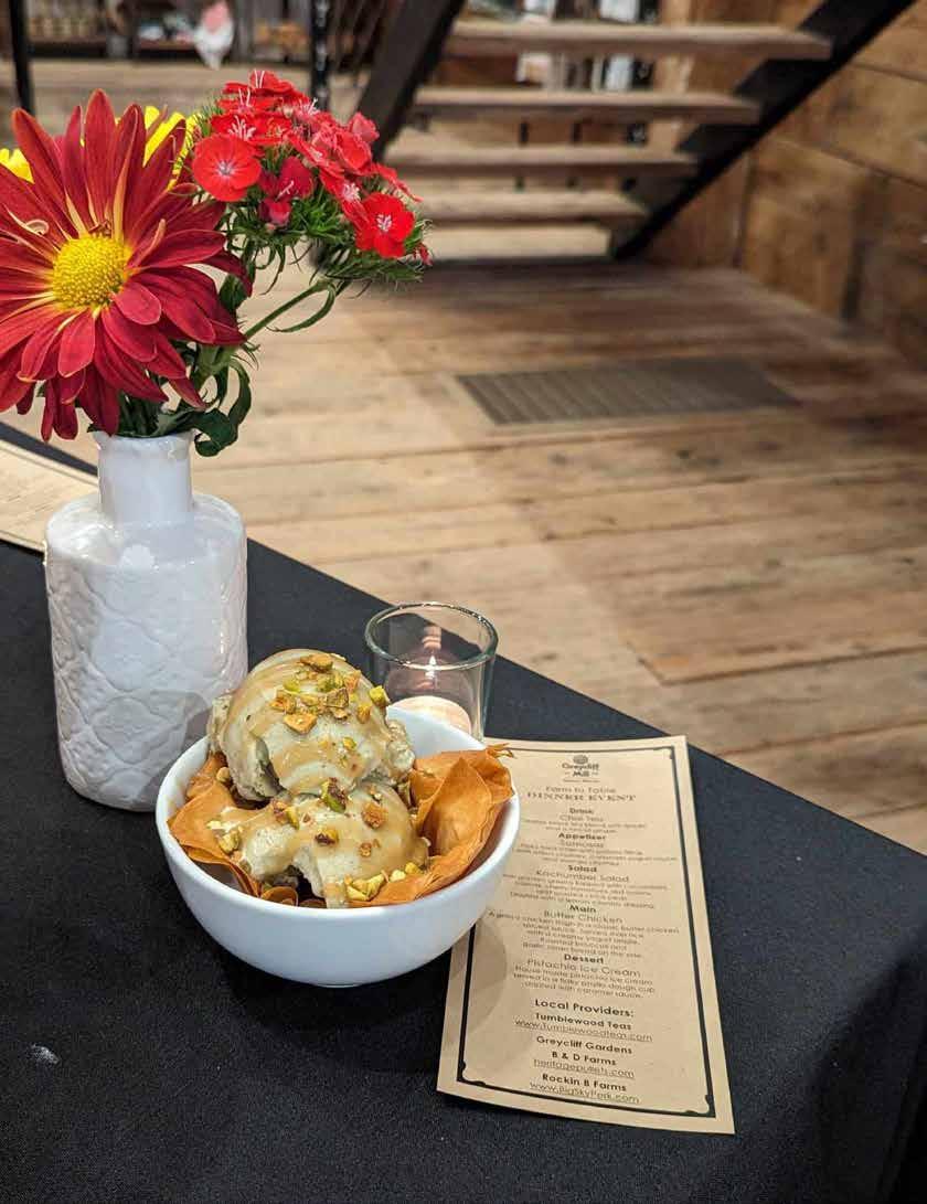 makes perfect sense now. We make the short walk back to our Mountain Sheep Silo and ready ourselves for the evening’s feast. Twice or three times per month, Greycliff Mill offers a farm-to-table themed dinner. Ours is Indian themed where we meet this five course menu of items: Chai tea, samosas, kachumber salad, butter chicken, and pistachio ice cream. Every ingredient is chosen to highlight the extravagance that can be achieved with seasonal ingredients and a little imagination. The old barn is home to these intimate dinners, which are known to pack the place and bring a homelike feeling to all guests. The wood beams reveal years of character and history and each dish brings new life to the space and conversations around us. Not to my surprise, my toddler devours the pistachio ice cream as his main meal but who cares when you’re on a getaway?