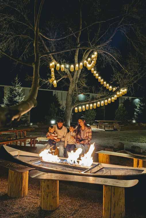 The Honey Hole is right next door and a perfect after-hours pairing to dinner. Lighted games make for a kid-free indulgence and laid back, before-bed entertainment. Other notable amenities include the 1,300-square-foot indoor pool, an outdoor hot tub, and a 29,000 square-foot courtyard, lovingly referred to as The Backyard, where lights are strewn on tree limbs, lanterns illuminate the gravel paths that wind between fire pits made within old canoes—prompting any visitor to pursue adventure, even if imaginary while roasting a