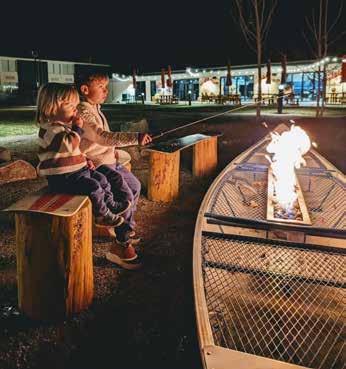 marshmallow from repurposed snowboard benches. For a child, the fenced space is a runway for roughhousing and firelight snacking.