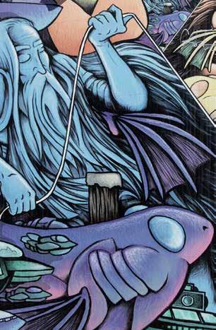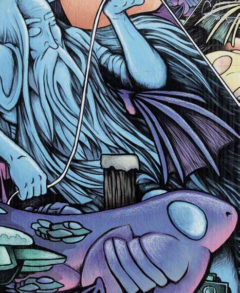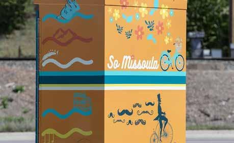 To transform a drab public utility box into a work of art seems apropos for Missoula, where we imbue our public spaces with creativity. “Artists have been out there, under tents, creating their artwork in rain, sleet, and snow. People will drive by and honk their horns in encouragement. I’ve seen many a dad bring their child soup,” said Kathi. With dedicated volunteers behind the scenes and resilient artists on the corners making their visions into reality, Missoula drivers have a pleasant surprise to enjoy while waiting at an otherwise boring red light. You can see pictures of all the boxes at PublicArtMissoula.org/traffic-signal-boxes.