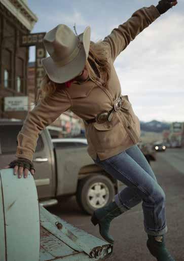 made from 100% Austrian wool, cut and sewn by hand in America. “Hat to hat, steamer to steamer,” says Colleen when describing her time working with Gina at Kemo Sabe, shaping hats for clients. “Her folks were friends with a cowboy named Darrell.” And Darrell became the Marlboro Man, putting a face to the spirit of the cowboy and selling it to American men and women. Colleen says to her friend, “Gina, one day you’ll be the Darrell to my Wyatt. It’s an ode to my best pal Gina who went out of her way to support me along the way.” Her friendturned-family was there to welcome her and her initial inventory of shirts when Colleen was freshly resigned from Ralph Lauren, ripe with a dream and the product to make it a reality. Gina posed for marketing photos and her mother snapped the camera. “My dream is that that jacket just continues to collect stories along the way,” says Colleen, noting how important it is that her product has the quality to last our generation and the next.