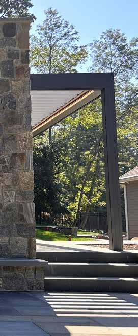 Chris adds, “Pergolas, once considered a summertime indulgence, have now become a year-round luxury with high-tech upgrades.” Clients attest to the transformative impact, with one noting, “My new Renson pergola features louvers which close automatically in the rain, retractable shades which close for privacy, LED lights for nighttime, and heat for those chilly evenings.” They also come with remotes, so if the sun gets too hot, you can just hit a button to adjust the angle of the louvers and enjoy some shade.