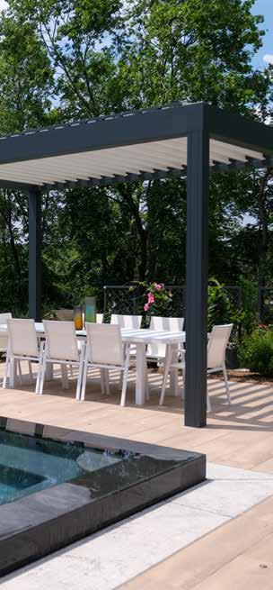 “Traditional pergolas had four columns and a series of cross beams that didn’t move, and were usually made out of wood,” says Aaron Thall, contrasting them with the newer, modern bioclimatic pergolas that respond intelligently to the climate. Rainy day? No problem. The louvered roofs automatically close, sparing you the mad dash to protect your patio furniture. Hosting an event? Stay dry as you revel in the seamless harmony of technology and nature.