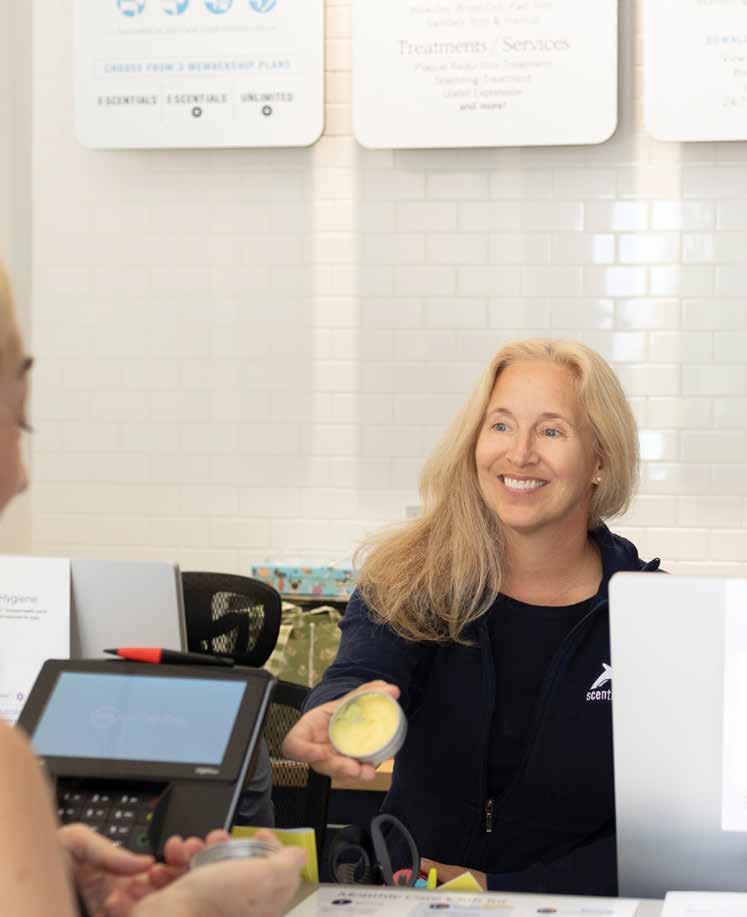 A popular membership is the Escentials Plus, which includes a double bath, ear cleaning, nail clip and teeth brushing, as well as a nail grind and access to a virtual veterinarian 24/7! For dogs bathed several times per month, Scenthound offers an unlimited membership. And another option is a shedding membership for dogs who shed all year-round. “We have an app so people can easily book appointments online, scroll down to review the service menu and then click on the services desired,” she says.