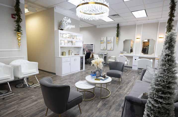 The salon’s Bridal Boutique provides a spacious, private suite for up to 20 guests, ideal for bridal parties and other celebrations. Clients may use in-house stylists, nail technicians, and makeup artists, or bring their own. Catering options are available, and guests are welcome to bring their own food and beverages. The salon accommodates early appointments to ensure timely preparation. The suite also serves as a venue for adult gatherings, such as birthdays and