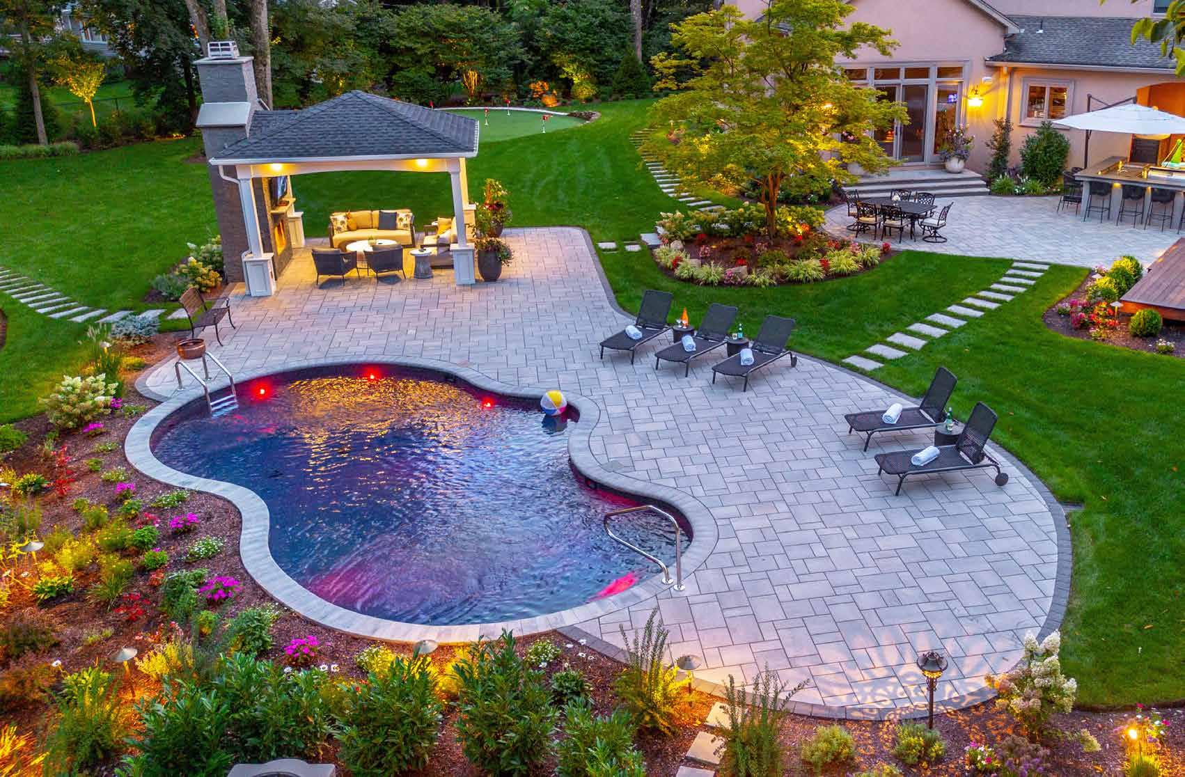 A pool, she explains, often transforms a backyard into a true gathering space for family and friends. “It becomes the center point of the backyard, whether it’s the kids playing in the pool or a mom and dad sitting around it with a cocktail in their hands.”