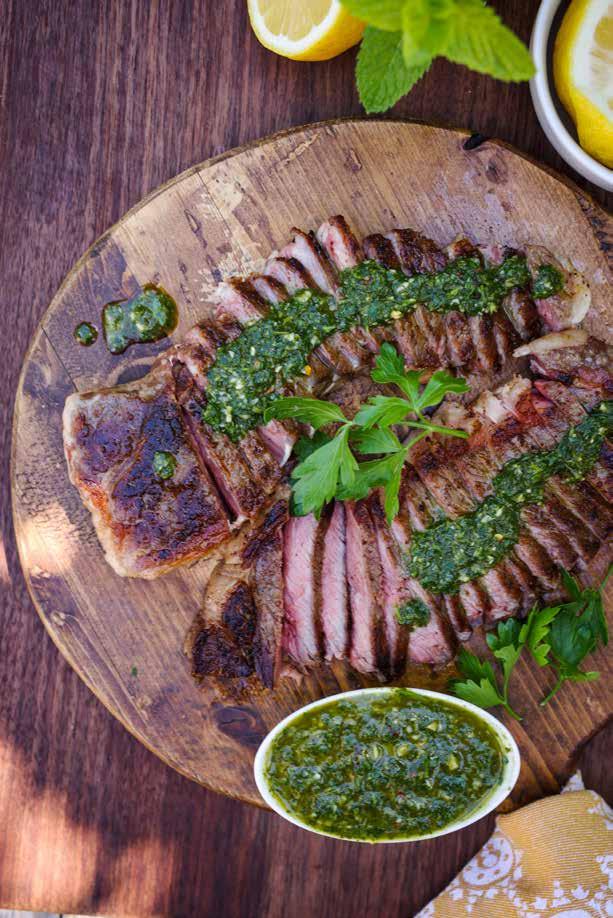 Culinarian is serving up some of her favorites. Try an easy and delicious salad with tomatoes, peaches, and burrata cheese and steak hot from the grill with a savory Chimichurri sauce. A pitcher of ice-cold vodka lemonade will refresh your guests, and a grilled corn salad adds the perfect touch.