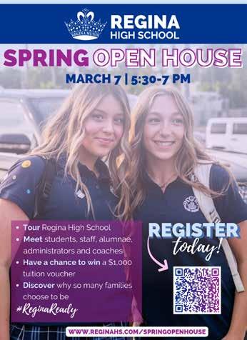 Visit the Spring Open House and meet Regina's students, staff, teachers, counselors, coaches, and alumnae. Tour the school and enter for the chance to win a tuition voucher. You can pre-register today at www.reginahs.com/springopenhouse and learn more about starting your Saddlelites story.