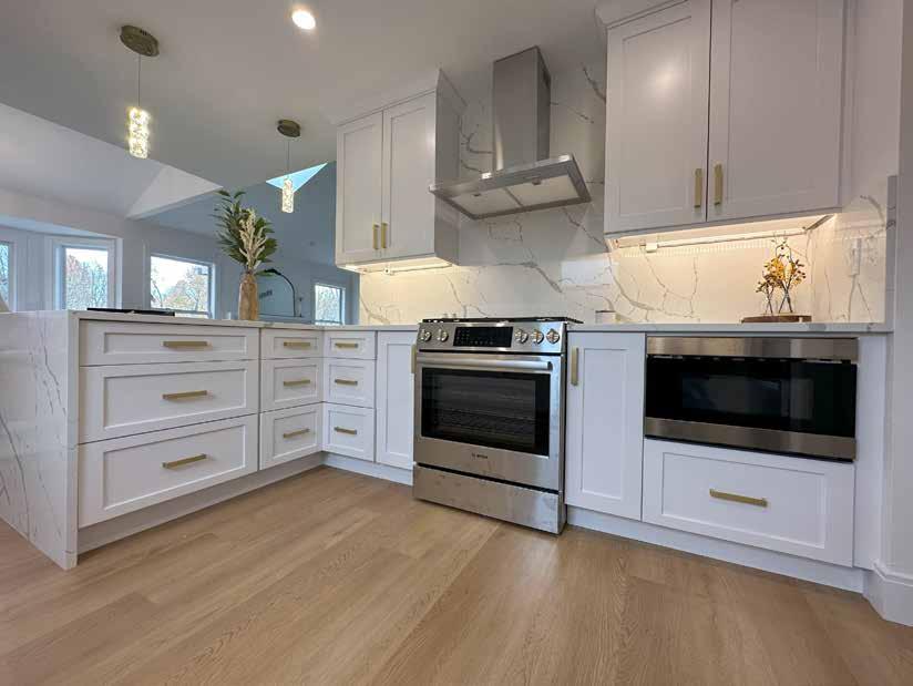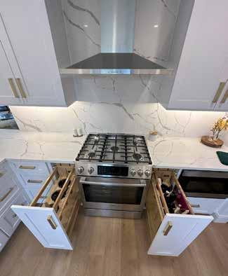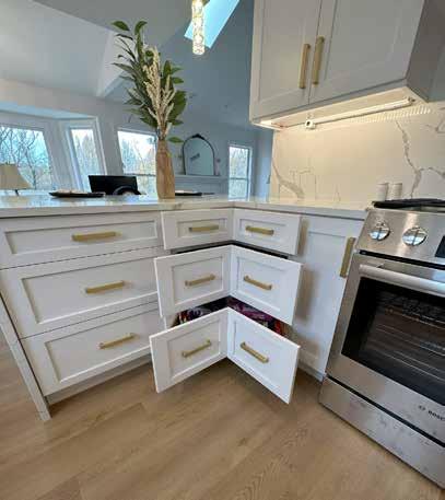When renovating your kitchen you always want to gain more storage than you currently have, no matter the size. We were able to design this kitchen with two pull out base cabinets on each side of the range, one with utensil bins and the other with knife blocks. In addition we added a three drawer corner base to give easy access to the hard to reach corner.