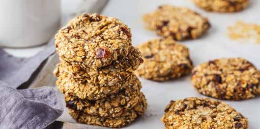 3/ Portion 1/4 cup mounds of cookie dough onto prepared cookie sheets. Use the back of a spoon to slightly flatten out into a cookie shape. (The cookies will not spread in the oven.)