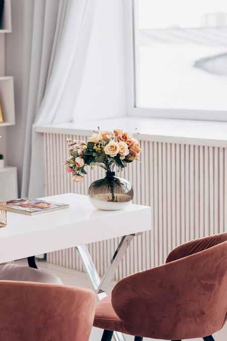 • Replace seasonal decor—bring in fresh flowers, soft pastels and airy textures.