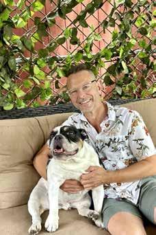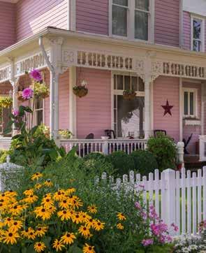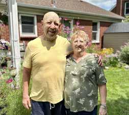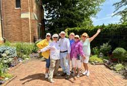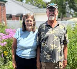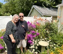 Leslie, Carolyn, Michael, Judy, Theresa, and Linda. 3: Vibrant dahlias flourish at the foot of the St. Peter statue. 4: Hall of Famers Boni and Ray Trahan, past winners of Grand Yard of the Year. 5: Aaron Werthmann and his beloved dog Bentley enjoy the cool shade of his maple tree. 6: Mary and John Honsel’s backyard: a perfect retreat for dinner, Tigers games, and blooming bliss. 7: Blending hues of pink and purple, this hydrangea graces the garden with vibrant, serene beauty.