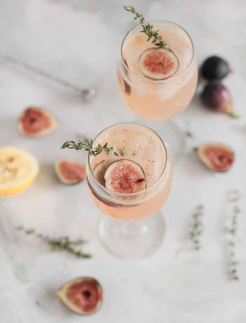 For the cocktail, muddle figs and lemon juice in the bottom of a glass. Add ice, 3/4 of the thyme syrup and Sprite. Stir and garnish with fig and a sprig of thyme.