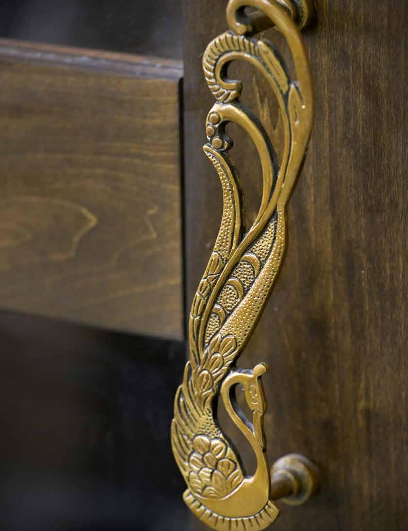 LASH ROOM: "I had them demo all the drop-ceilings. That opened up this room so much more. Shiplap wood on the ceiling from Tkalcac Lumber sawmill, basket-weave chair rail, and swan wallpaper that looks like eyelashes. Furnishings are vintage, from stores around here. That gets lots of reactions from the vintage store owners when they come: ‘Oh, that’s from my place!’”