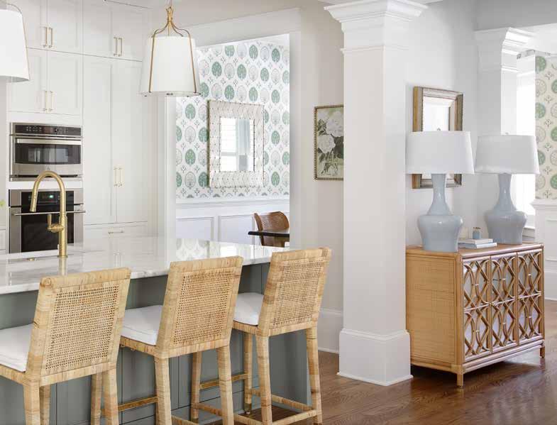 One such job that the design firm recently finished was the Southern Sophistication project, during which, Dussault and her team installed an entirely new kitchen, complete with all new custom cabinetry, gorgeous dolomite countertops and new brushed brass finishes. Adding other finishing touches such as fresh paint throughout, wallpaper in several spaces, custom drapery and pillows, new custom built-ins, lighting and new and existing furnishings and accessories elevated the design and transformed this already beautiful townhome into an updated, sophisticated, southern stunner.