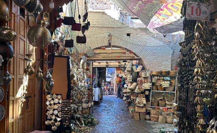 The city of Fes is best known for its famous tannery, where they use a natural process to dye leather into bright colors. Through this natural process, pigeon droppings and limestone are used to strip the hides of their natural color and create a white base to prepare the leather to be dyed. Rather than using chemical-based dyes, the array of colors used to dye the leather at the tannery come straight from the earth. With flowers and herbs being transformed into dyes, the plain leather is then transformed into a rainbow of varying hues- shades of red derived from poppies, greens from mint, and blues from indigo.
