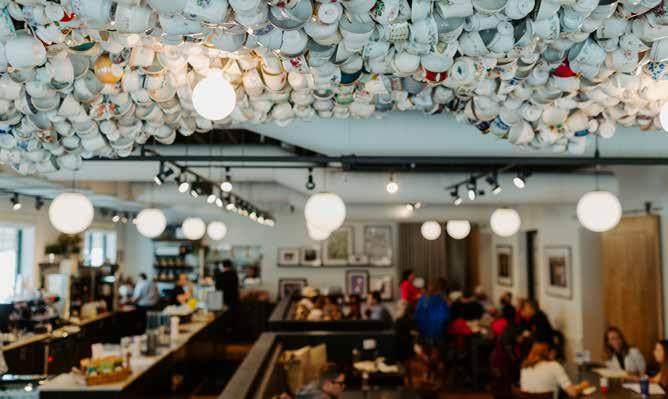 Diners also notice a wave of teacups hanging from the ceiling. These cups were donated by people all over the world and everyone has a story attached to it. “One is in honor of someone’s grandmother, another is from someone who lost her daughter to an overdose, and so on. There's also a candle burning for the next woman on the street.”