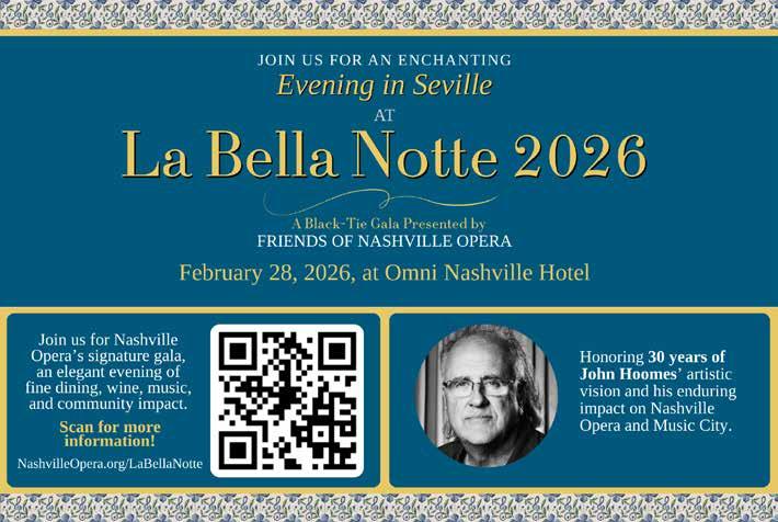 the Nashville community and his support for the opera’s mission. He arrived in Music City in 1952 as a young entrepreneur and spent years supporting the Nashville Opera.