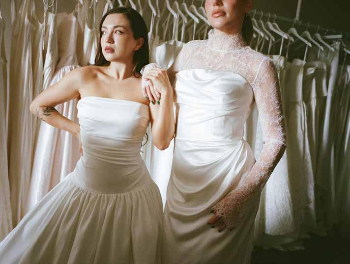 When it comes to balancing trends with timeless pieces, MaryKate and Christy like to keep an array of options in their shop, blending trendy elements and classic silhouettes. Even when something is trenddriven, they want to ensure it feels simple enough that their brides won’t look back one day and feel like it’s dated. Every appointment at Bloom is designed to feel personal and unrushed—a space where you can explore gowns that meet modern romance and timeless style. The mother and daughter’s close bond also reflects in the relationships they share with their brides, striving to create an experience that is warm and personal, not transactional.