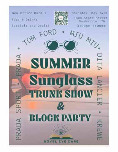 Join Novel Eye Care at their vibrant summer celebration at 1800 State Street on Thursday, May 14th from 3:00–6:00 PM. The event will feature an exclusive sunglass trunk show showcasing designer collections from Prada, Tom Ford, Miu Miu, Dita, and Krewe. Attendees can enjoy music by Moriah Domby, along with food and drinks, while exploring new office murals in a lively, community-focused atmosphere.