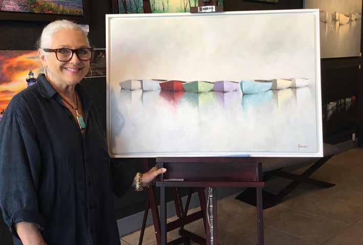 Leslie Berenson's artwork is characterized by bold shapes and vibrant colors that convey a sense of peacefulness and tranquility. Drawing inspiration from her personal experiences and emotions, her work is both calming and meaningful. She spent her early years fishing with her father in New England, which remains a source of inspiration for her work today. Leslie graduated from the Art Institute of Boston, but spent the early part of her career in the commercial side of art, working in fashion and eventually becoming the creative director of women's magazines. She is exclusively represented by Procaccini Galleries, with locations in Naples on Fifth Avenue South and Key West on Duval Street. Art on Fifth Ave, owned by