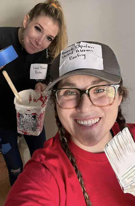 Lauren Brimhall (left) and Amanda Capoferri, of United Veterans Roofing, volunteer for Habitat For Humanity.