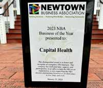Capital Health received the Newtown Business Association's "Business Of The Year" award for 2023. "Capital Health has stepped up and become a major supporter of our events the past few years, including as a major sponsor of Welcome Day. And each year they asked how they can get more involved," says Dave Marcolla, NBA president. "They have also been helpful to us in providing speakers for our meetings. We felt they deserved this recognition."