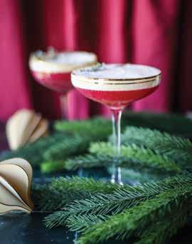 A bright, elegant cocktail with a foamy top and a hint of holiday spirit.